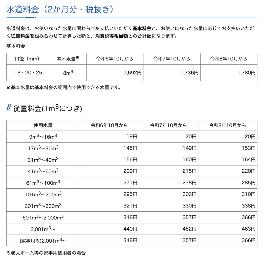 水道料金は結構複雑で地域でも異なりますが、基本料金と従量料金で構成されています。