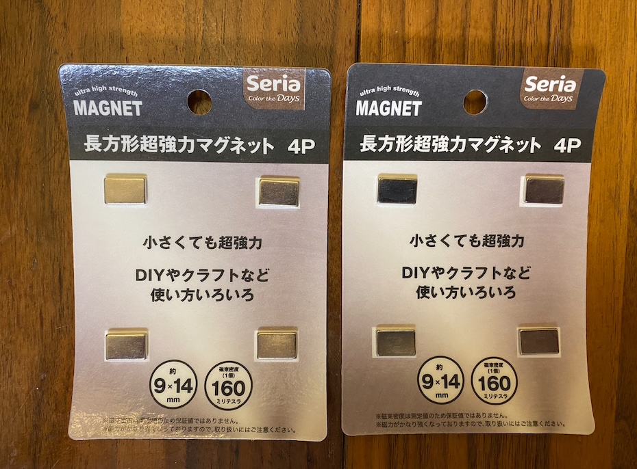 今度は100均セリアで、強力そうな磁石を買ってきました。