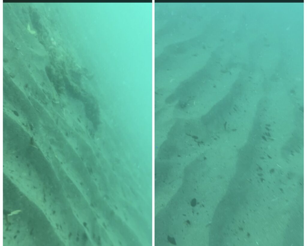 やはり砂地です。水深は5mくらいのかなり海岸に近い場所です。