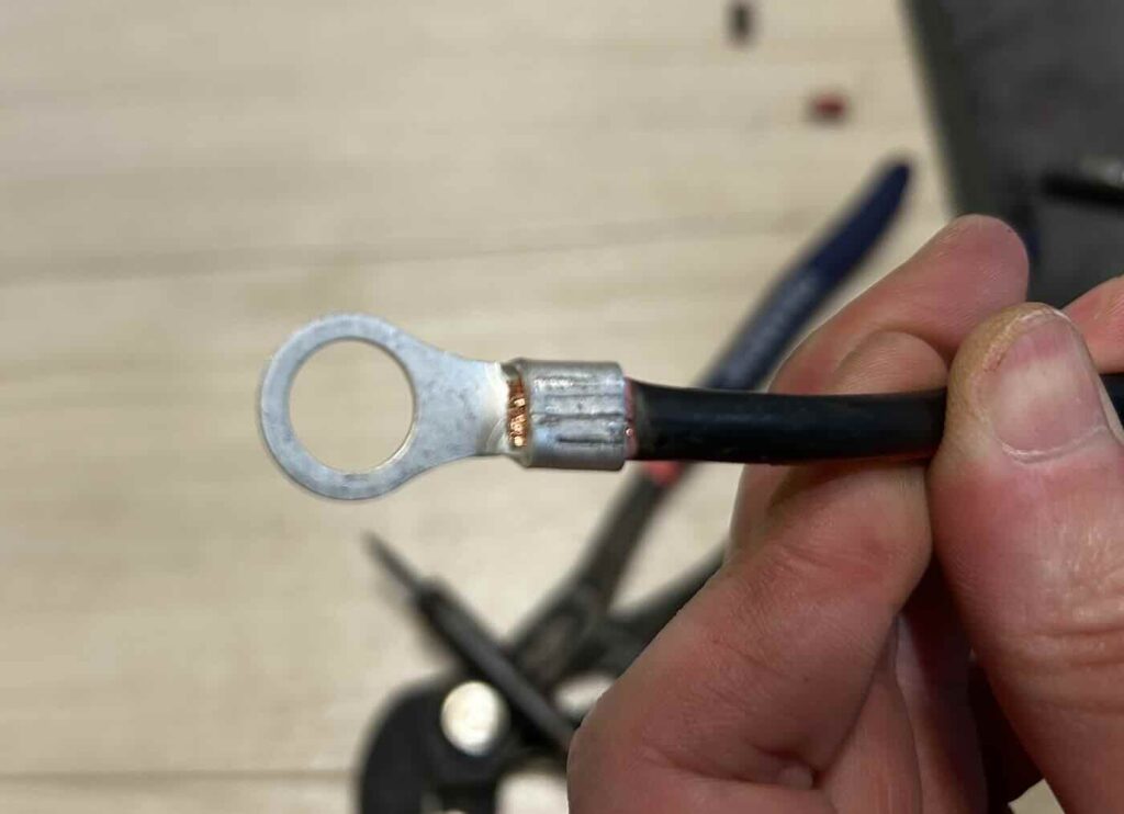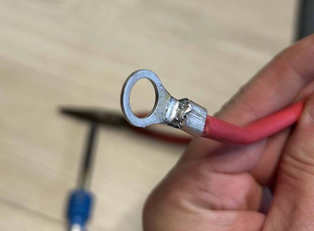端子に銅線を差し込んで圧着するだけでは、