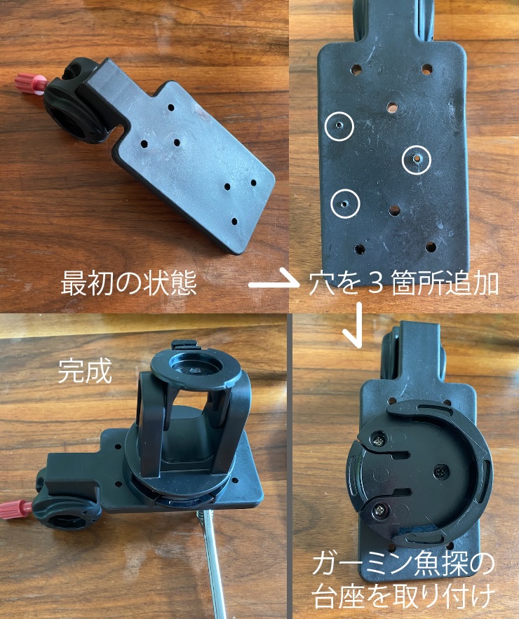 早速、この多目的ホルダーに、ガーミン魚探のベースを取り付けてみました。