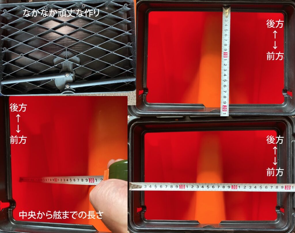 中央ハッチは、収納袋が付いているので小物を収納できます。 しかし、ハッチを開けるには、椅子をレールの一番後ろにスライドしないと開けられません。基本的に椅子は動かないようにレールに固定するので、気軽に動かしたりできません。 あまり使わない工具などを収納すると良いかもしれません。