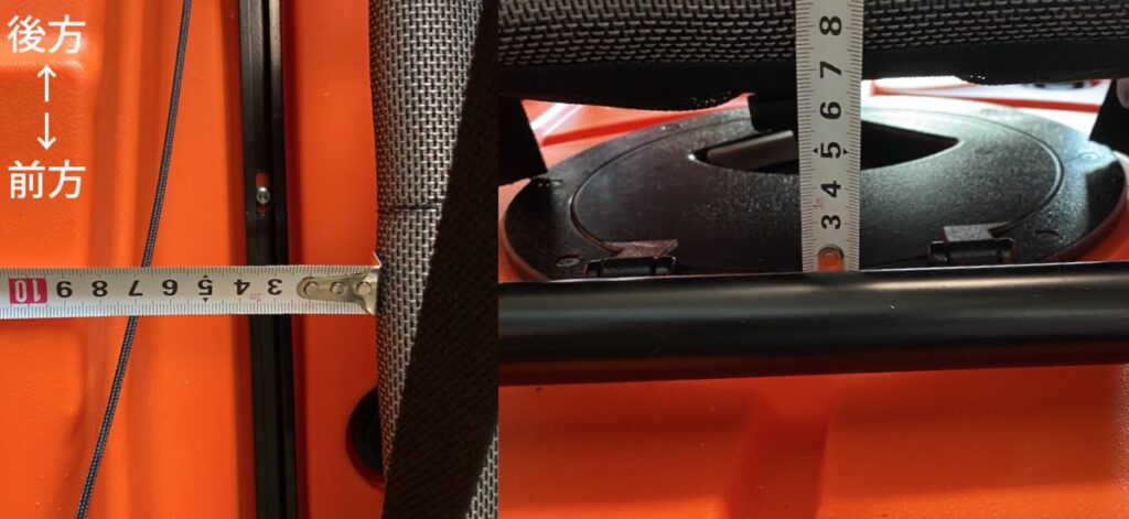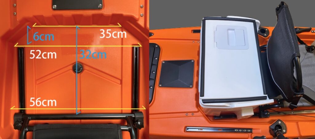 クーラーボックスが置けそうな場所は椅子のすぐ後ろ一択だと思います。そこで実際置いてみました。