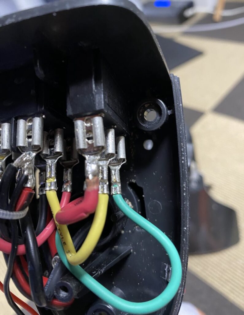 赤色の配線を抜き、そこに緑色の配線を挿して確認してみると、